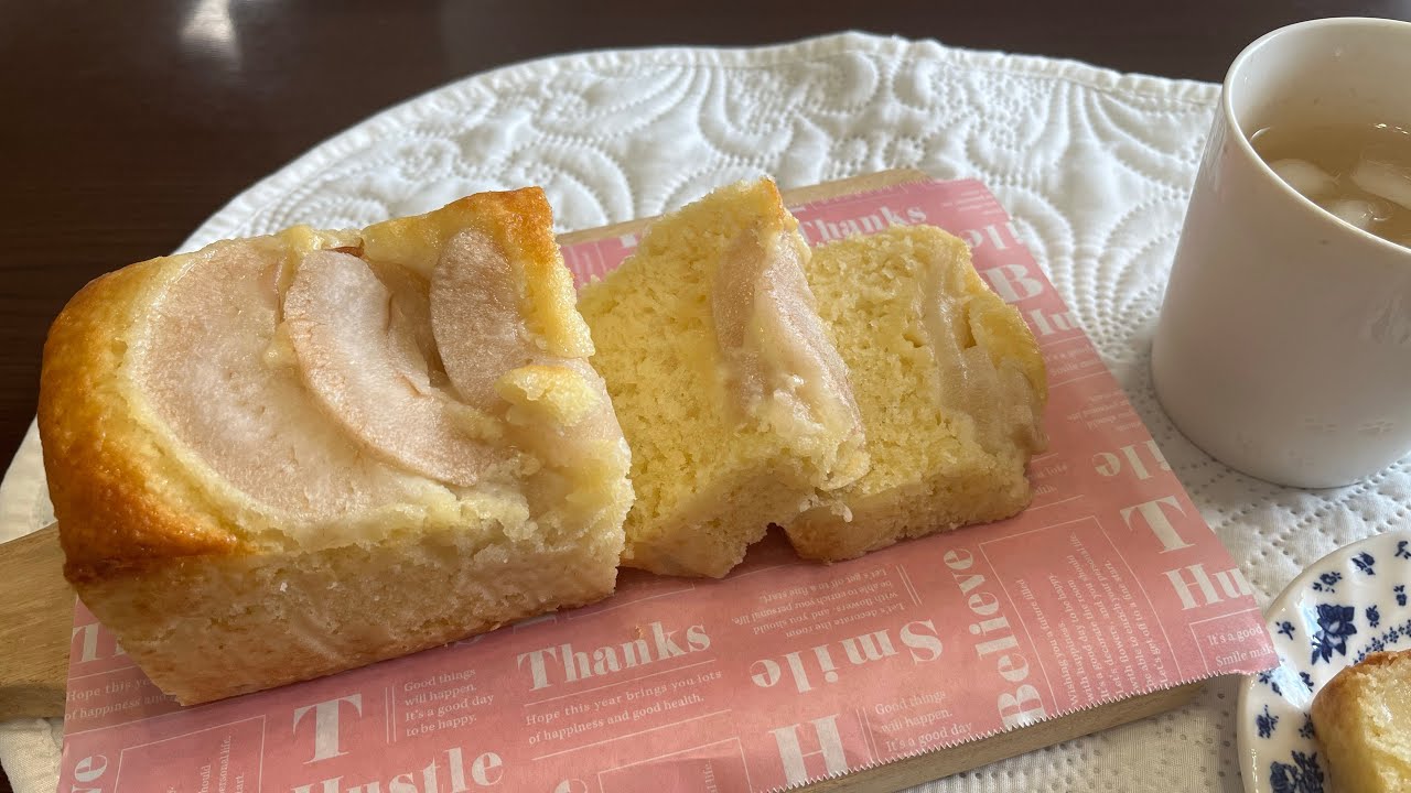 甘くてジューシー♡梨のパウンドケーキ ホットケーキミックスでお手軽レシピ。