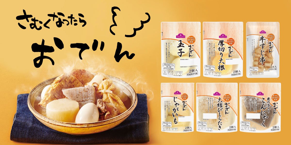 イオントップバリュ on X: "好きなものを選んで食べよう♪ おでん単品シリーズ🍢 \鰹と昆布の合わせだしでじっくり煮込んでいるので、中まで味がしみしみ ´ސު` ♡ みんなの好きなおでん種はな~に😋❓商品をチェック⇒https:t.co ThI4BpMAzKトップバリュ。