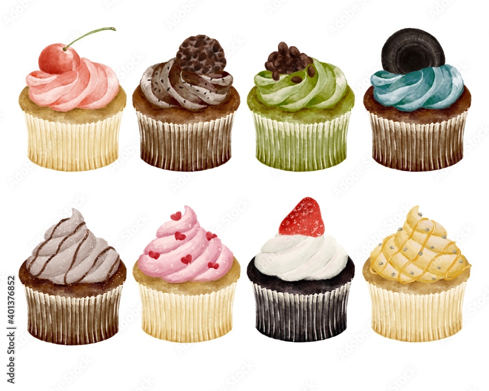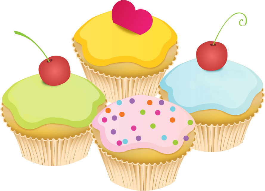 カラフルでかわいい4種類のカップケーキ。無料ベクターイラスト素材 - All Free Clipart +。