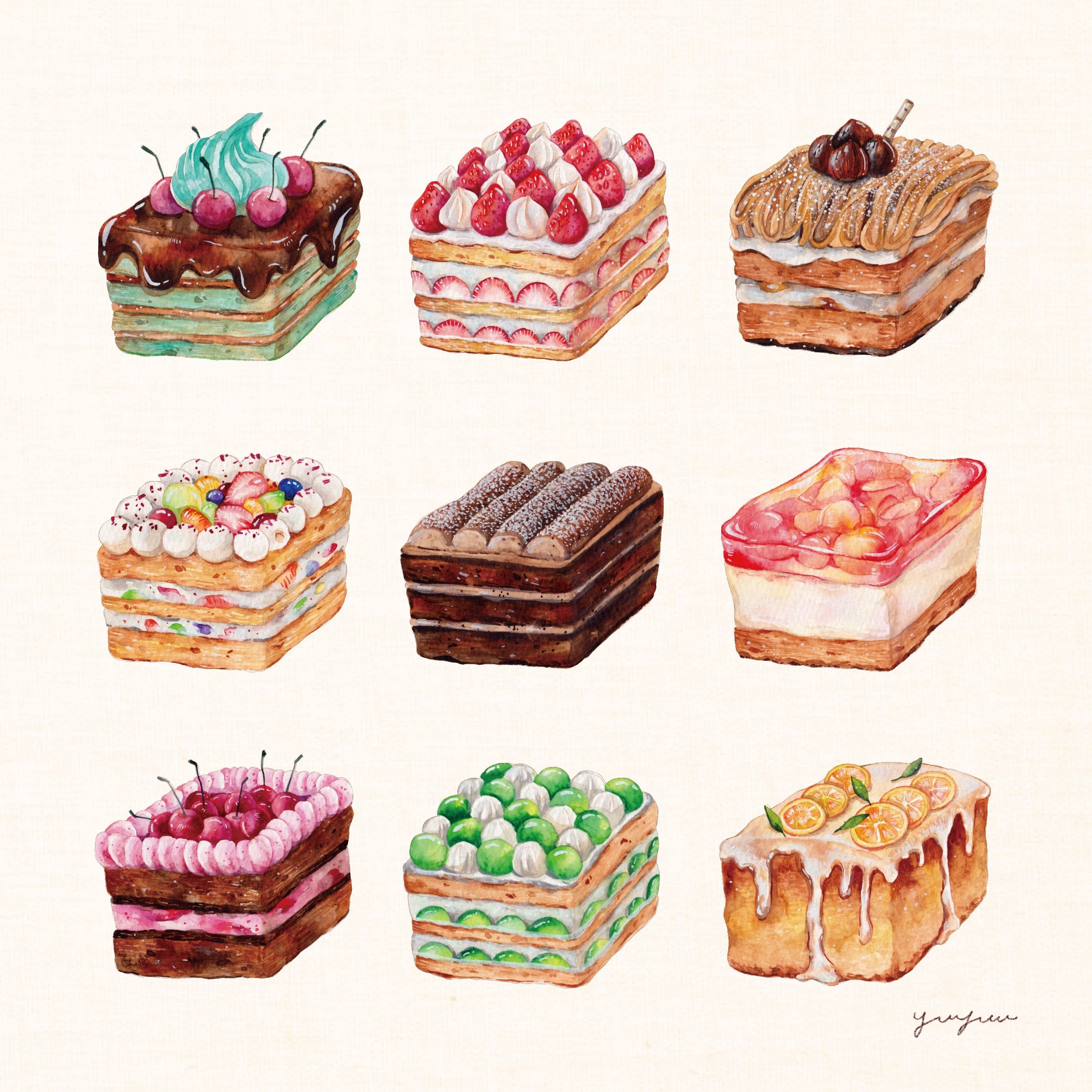 さまざまな種類のケーキのイラストイラスト素材透過、PNGフリー画像ダウンロード - Pngtree。