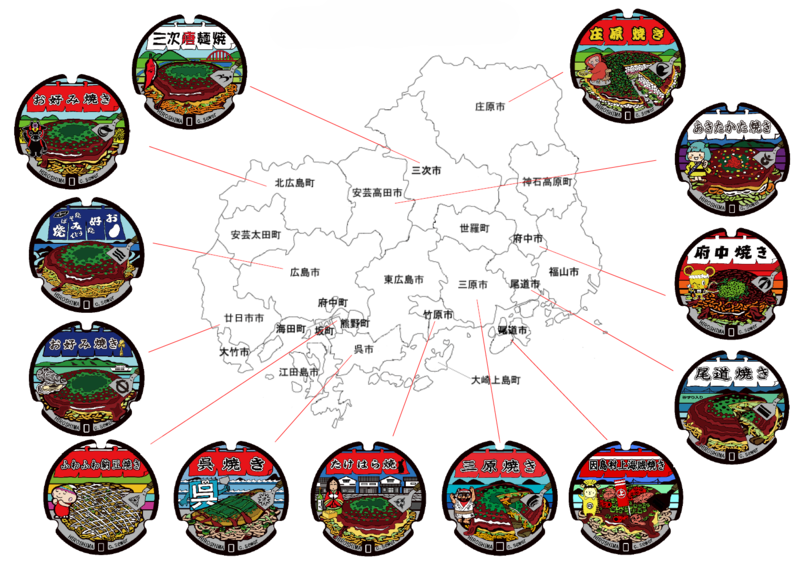 中央通りにお好み焼きのデザインマンホールプレートが出現!!広島市公式ウェブサイト。