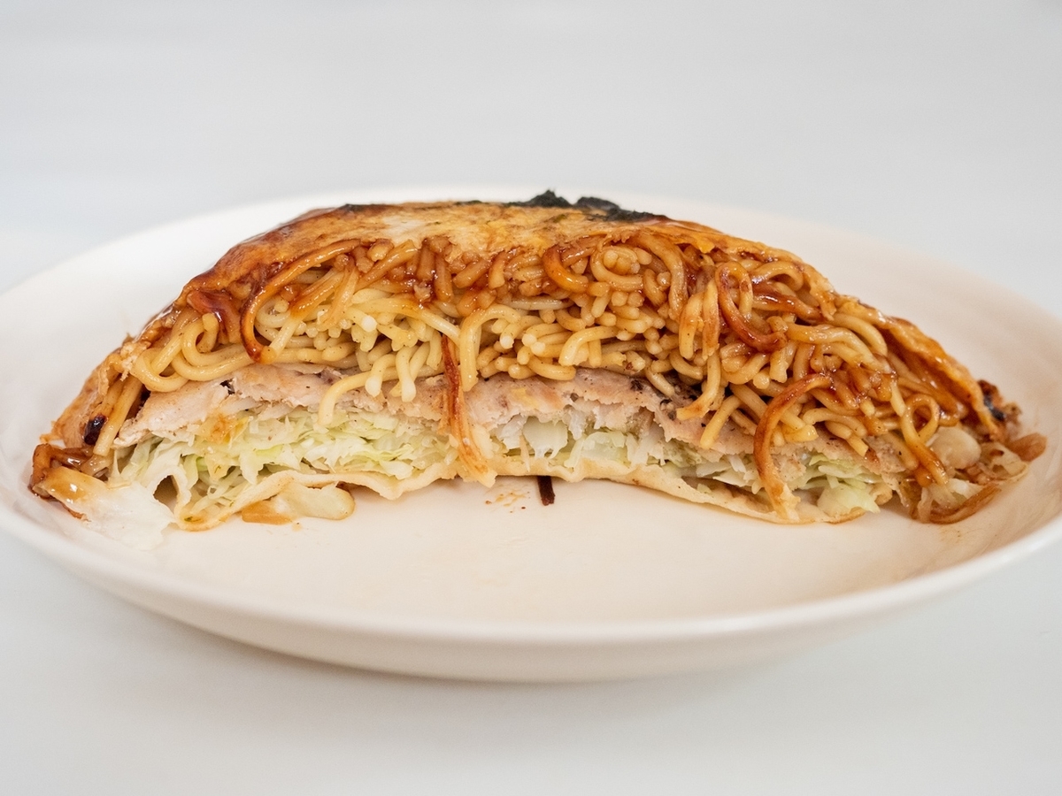 フリーイラスト焼きそばが入ったお好み焼きパブリックドメインQ:著作権フリー画像素材集。
