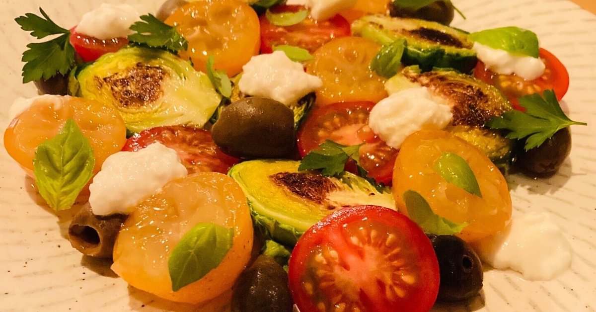 芽キャベツとプチトマトのチーズ入りアヒージョ。