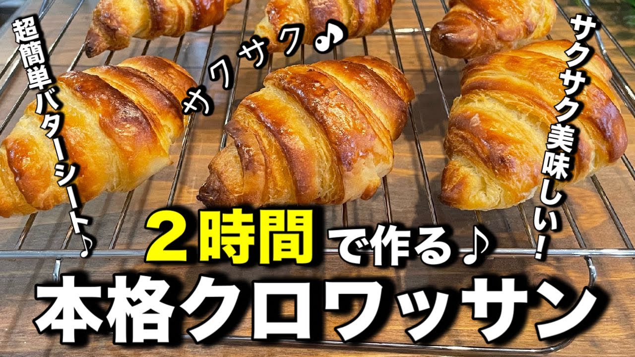 2時間で作る!本格クロワッサンの作り方!簡単折り込みバターで楽ちんクロワッサン♪時短で作れるのでパン作り初心者さんにもオススメです。
