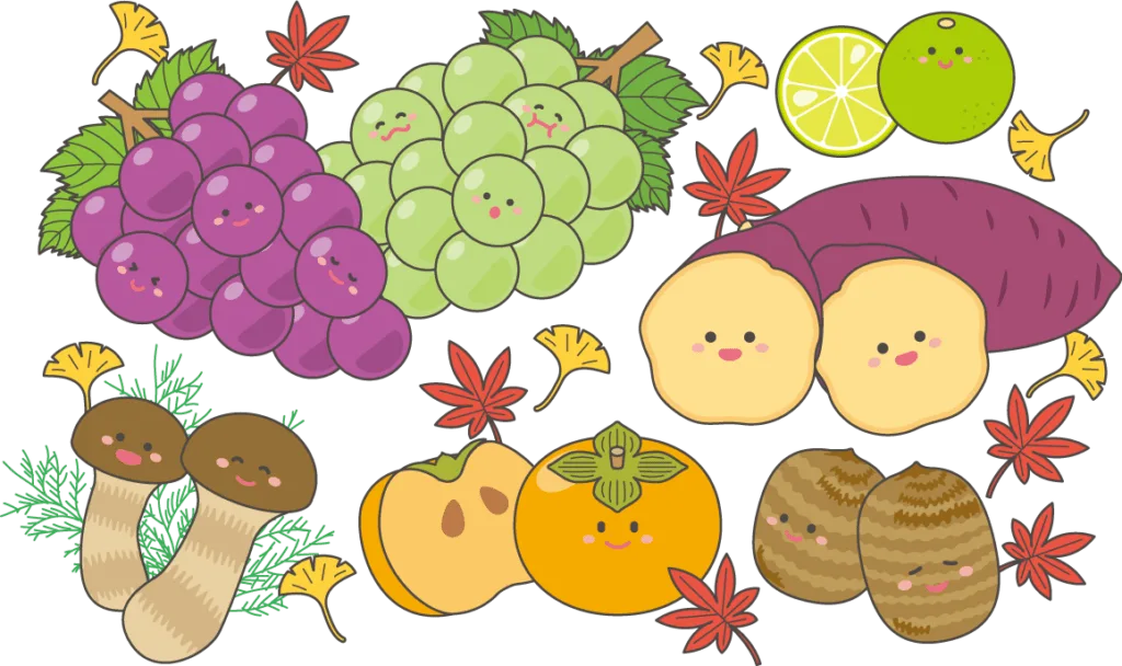 かわいくて美味しそうな秋の味覚のイラスト:イラスト無料。
