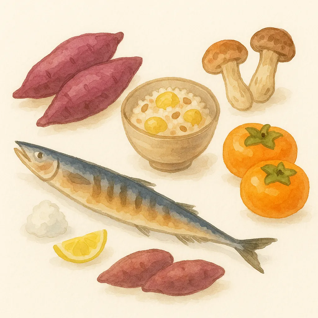 秋が旬の食べ物イラスト 果物 野菜 魚 スイーツ 無料フリー素材 - フリーランスWebデザイナーのリアル。
