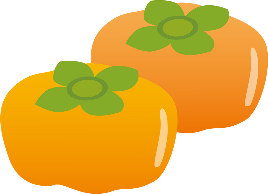 秋の印刷用イラスト素材「秋・食べ物の素材・柿」ダウンロード。