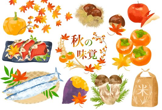 秋の味覚 旬の食材 セットのイラスト素材53752937- PIXTA。