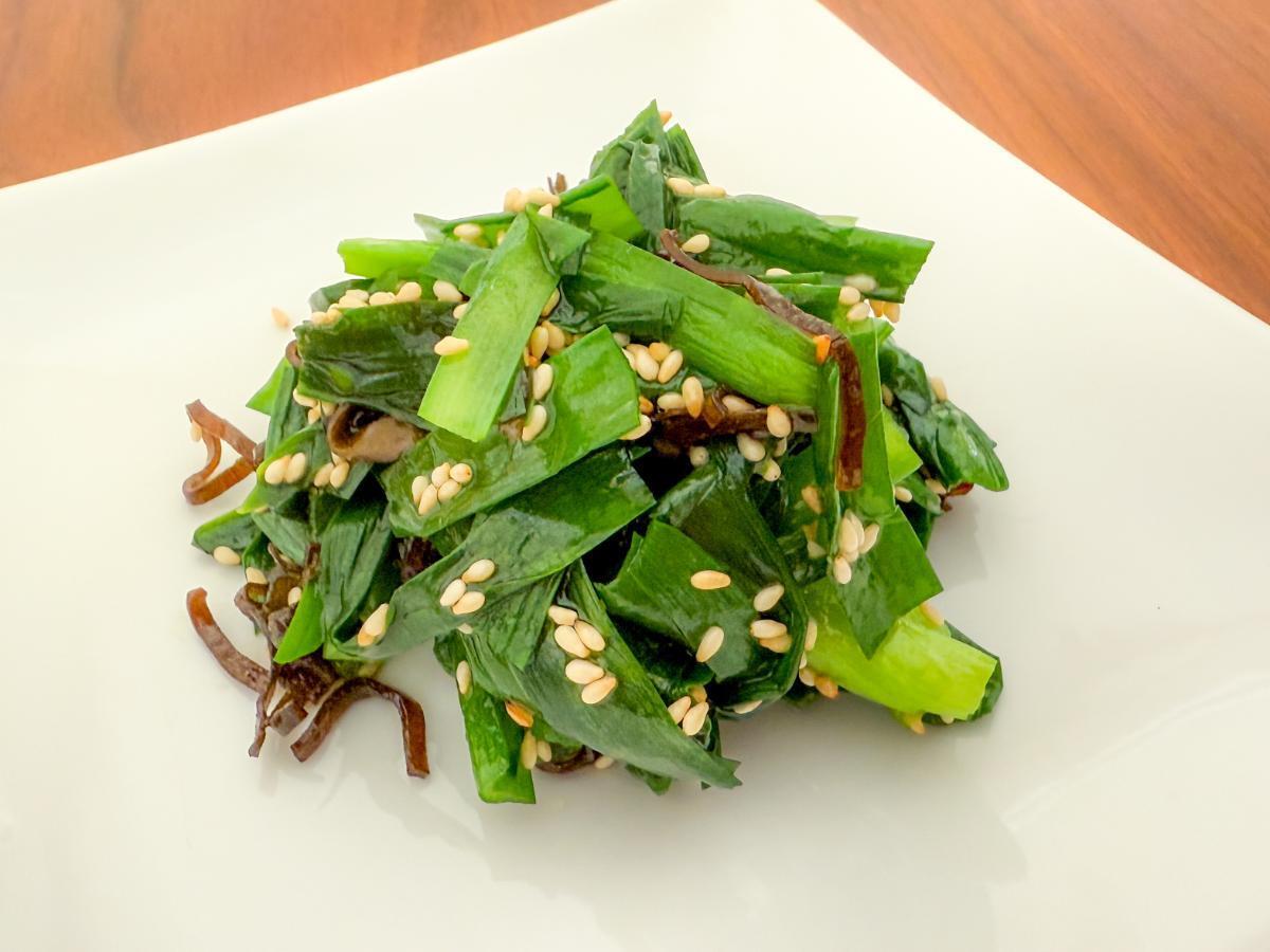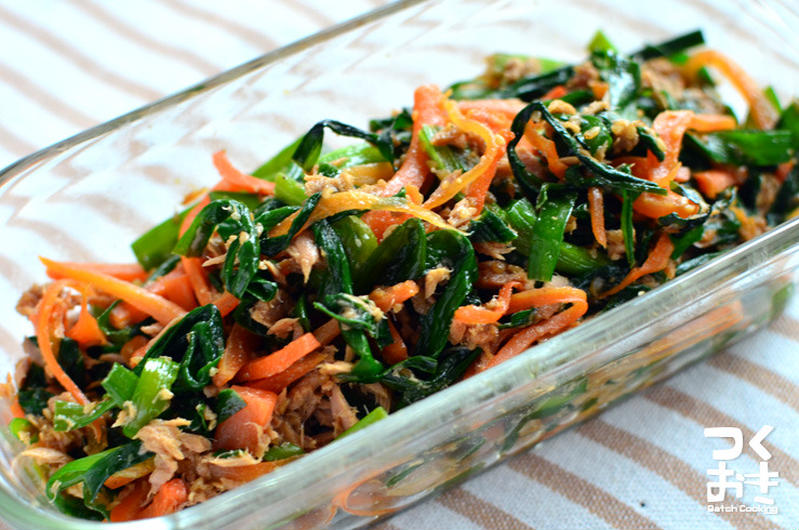 食べだしたら止まらない! ニラとツナのごまマヨ和え。
