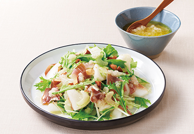 梨と生ハムのサラダ仕立て。