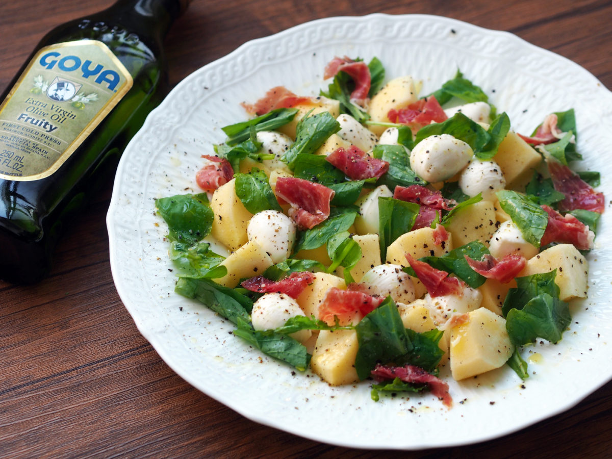 梨とモッツァレラのサラダGOYA® エキストラバージン オリーブオイル。