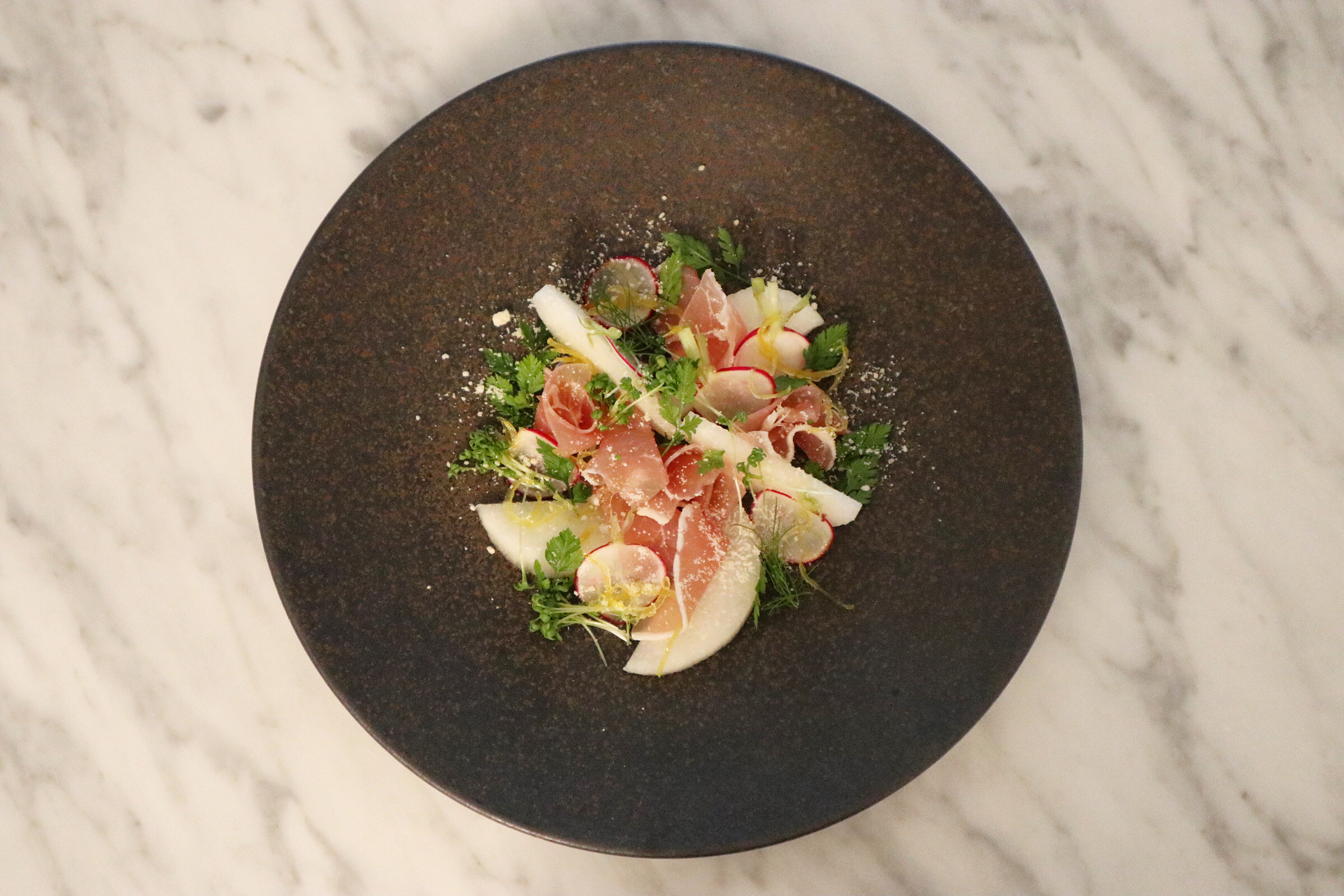 梨と生ハムのサラダ仕立て “フランス料理フルコース” マナー 包丁の使い方。