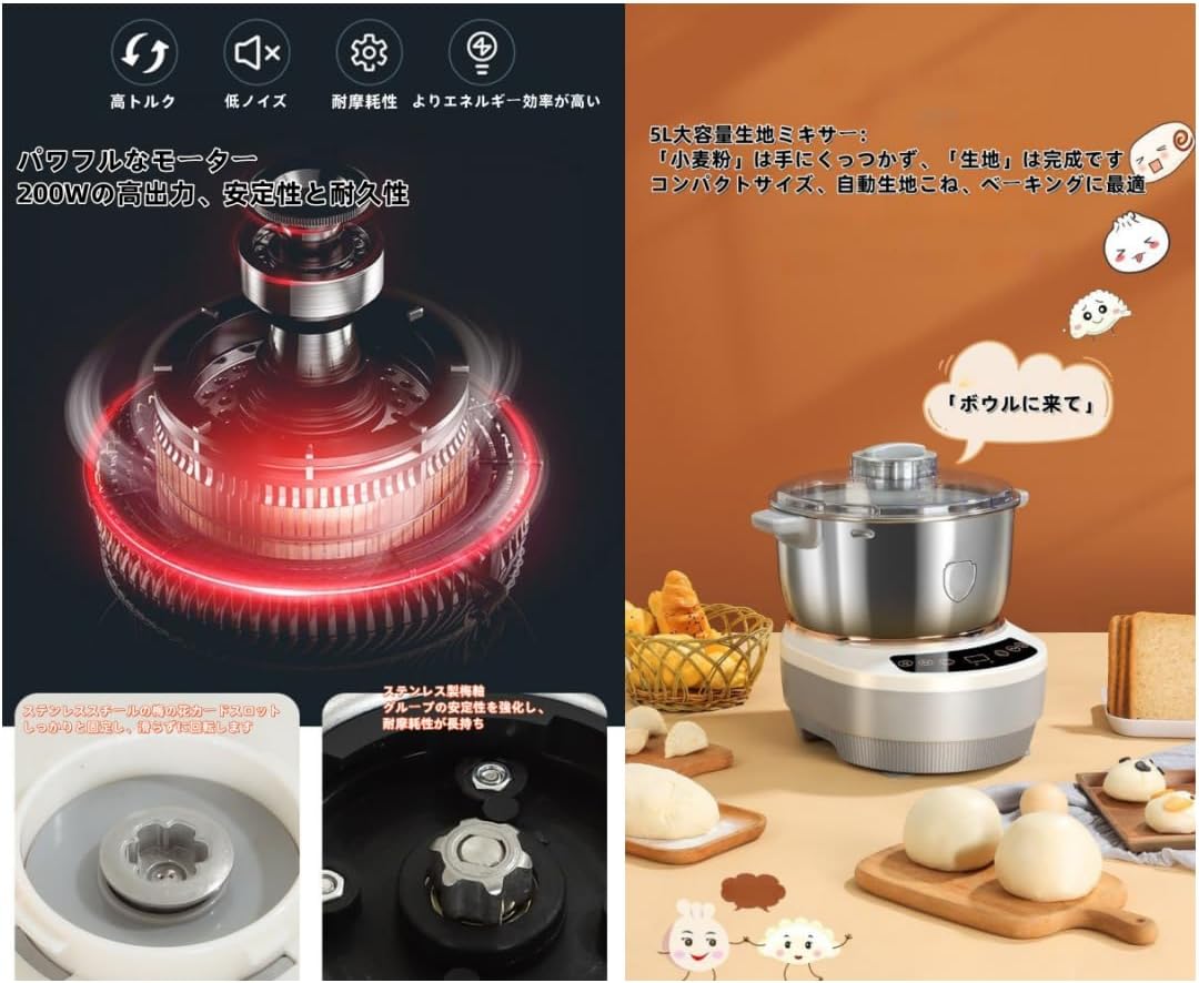 Aucma スタンドミキサー 4.5L大容量 電動 お菓子 パン手作り キッチン 現役パン職人。