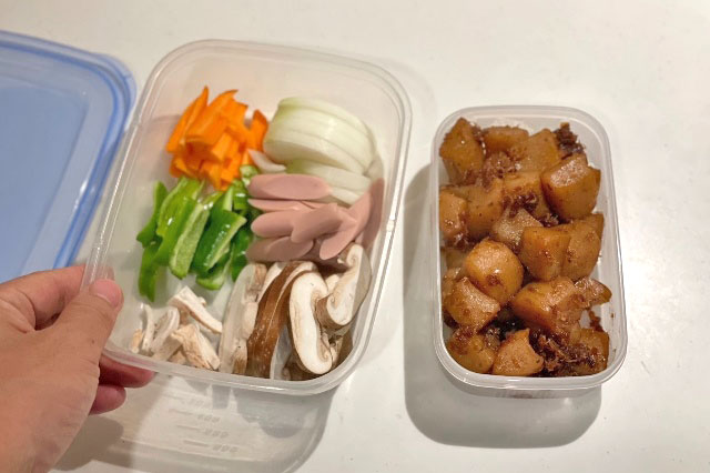 6日分の野菜炒め弁当作り置きの方法。