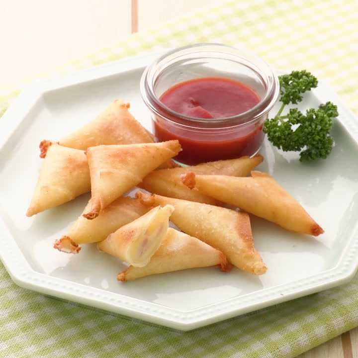 春巻きの皮で! 三角ベーコンチーズ。