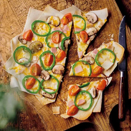 春巻きの皮の重ねピザ。