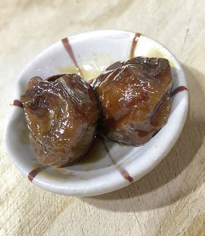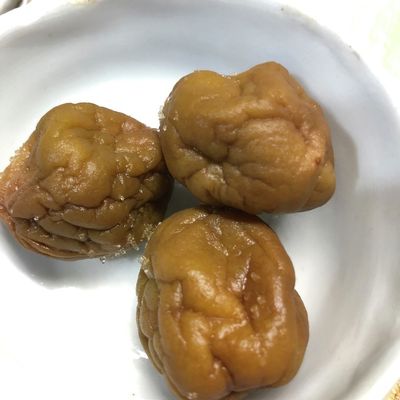 梅酒の出し殻?しわしわ梅の甘露煮。