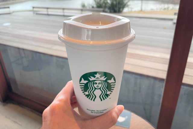 スタバの紙のフタ、とても飲みにくかった☕️ これで全部紙になったから分別も不要だし環境にも良いのかも。
