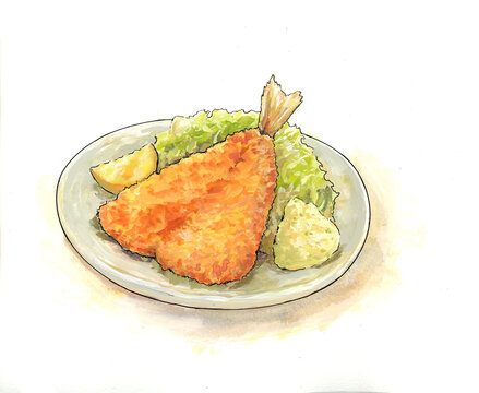 手描き水彩厚塗りのアジフライセットのイラスト素材80752417- PIXTA。
