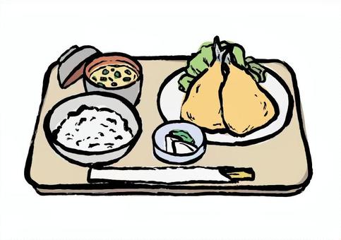 食事☆揚げ物☆アジフライ定食:イラスト無料。
