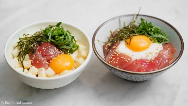 山かけマグロ丼+角切り長芋マグロ丼のレシピ - 生かし屋さん。