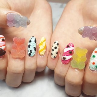 myu.nail:食べたくなっちゃう⁈サーティワンアイスクリームのようなカラフルでPOPな可愛いネイル♡うるま市,沖縄市,ハンドジェル。
