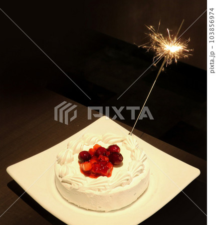 バースデー ケーキに花火の写真・画像素材-Snapmart スナップマート。