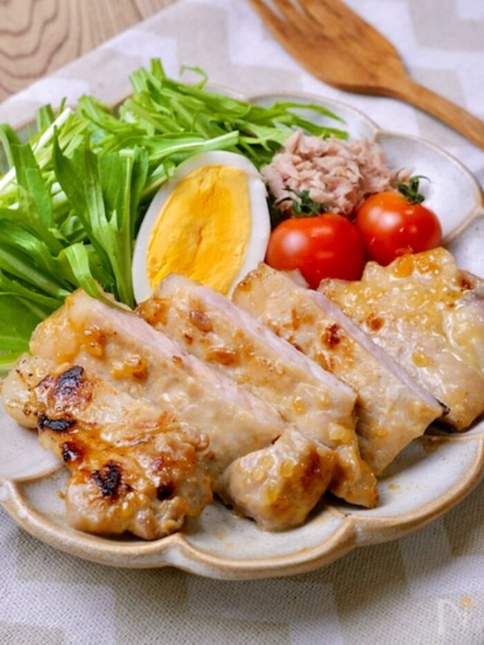 下味冷凍 豚ロースの味噌ガーリック焼き。