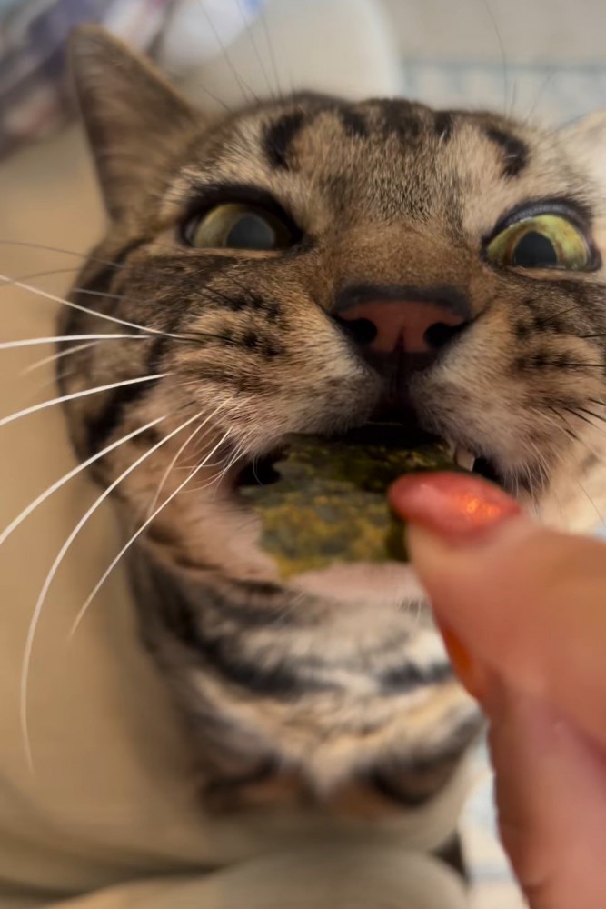 海苔を食べたら口の裏にくっついてしまった猫→「表情がアニメすぎる」「全然食べれてないw」と想像以上の反応が85万7000再生の大反響ニフティニュース。