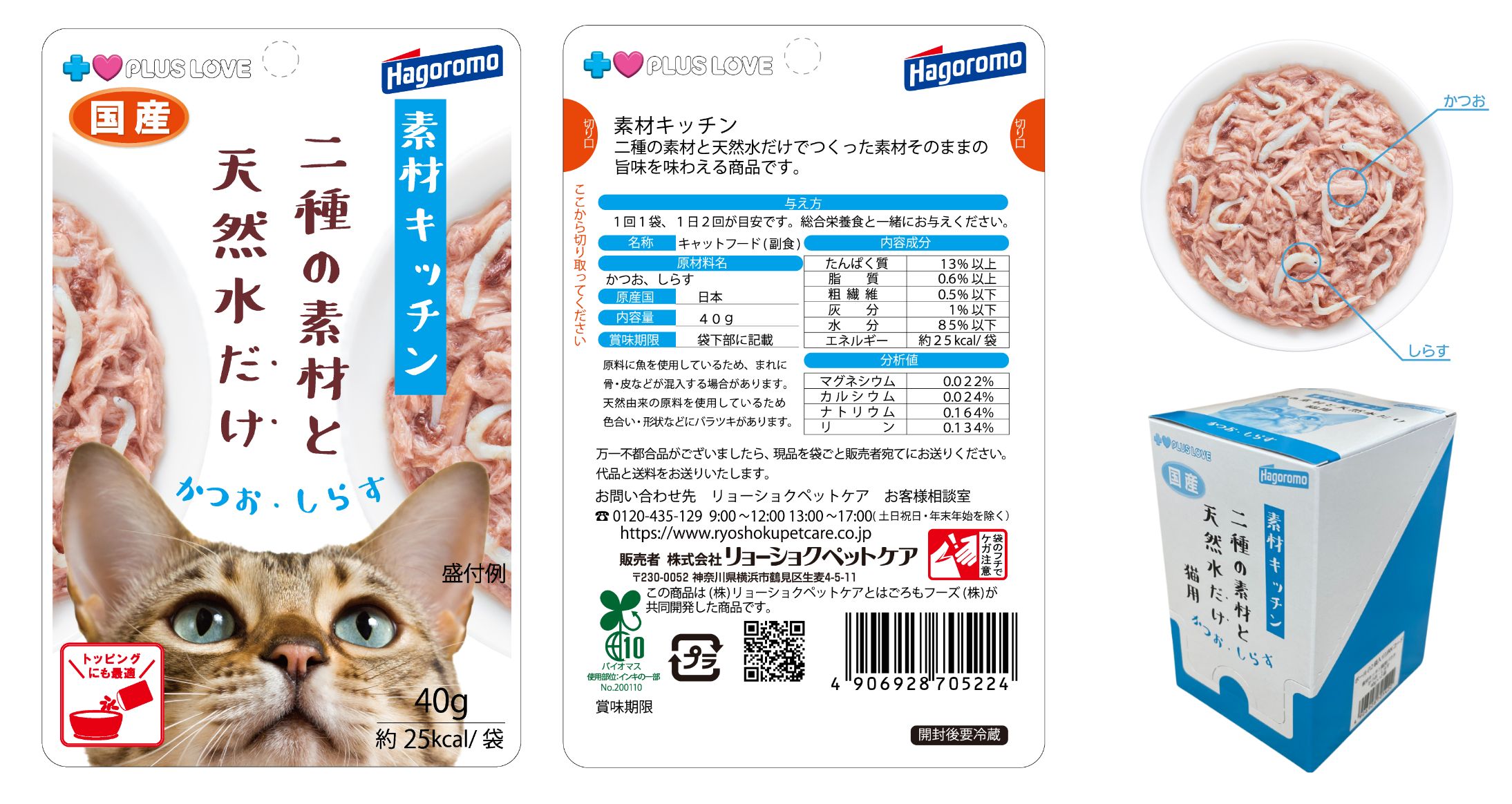 プラスラブ 素材キッチン 二種の素材と天然水だけ かつお・しらす 猫用 40g商品情報株式会社リョーショクペットケア RYOSHOKUPETCARE LTD。