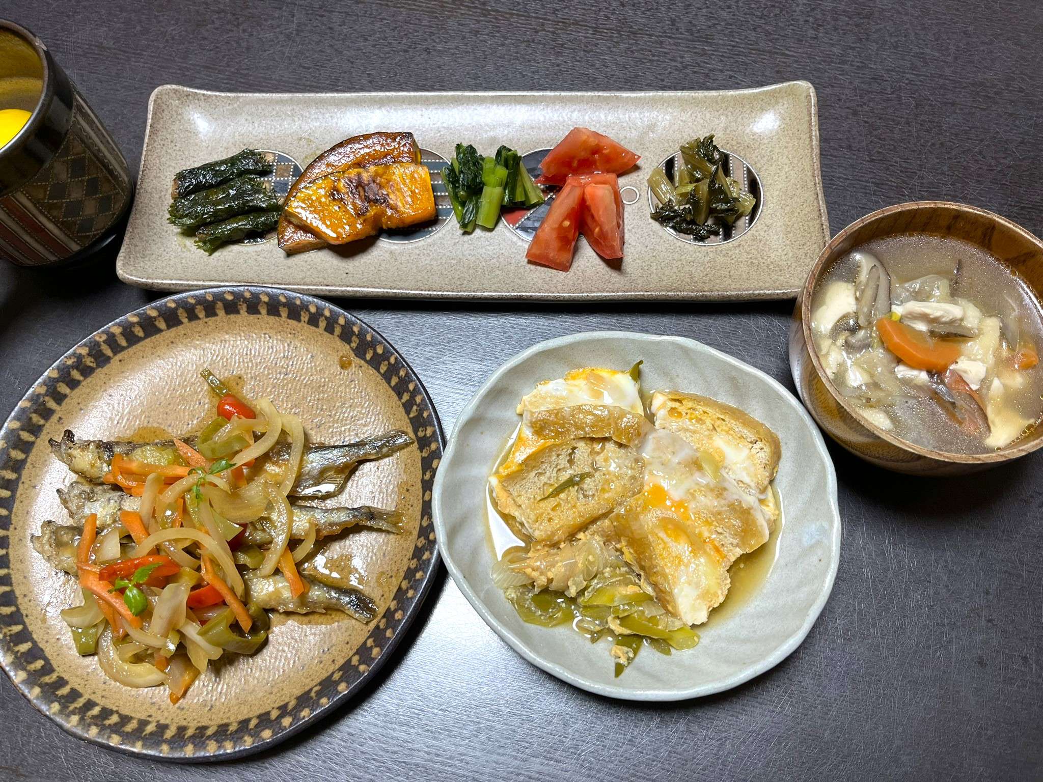 ししゃもの南蛮漬け』と『栃尾揚げの卵とじ』お な か す い た~。