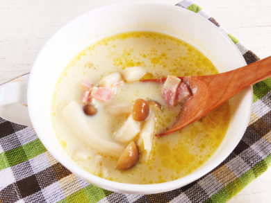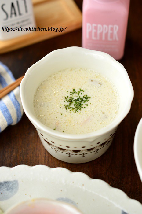 レンジで簡単!白だし豆乳スープ。