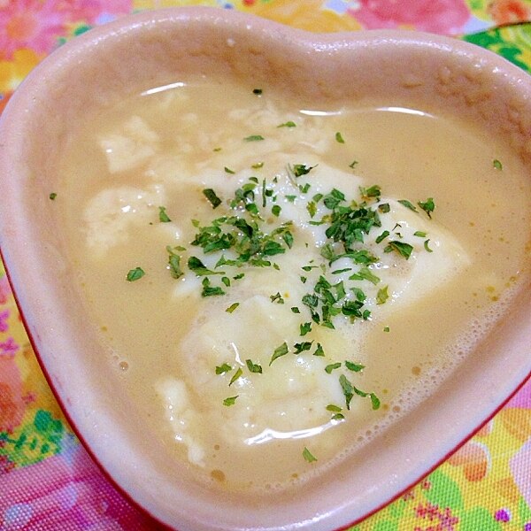 レンジで簡単!チーズと豆腐と豆乳のスープ。