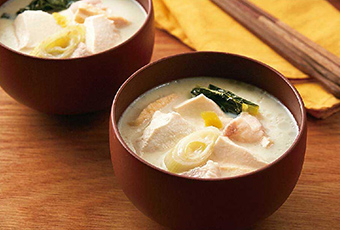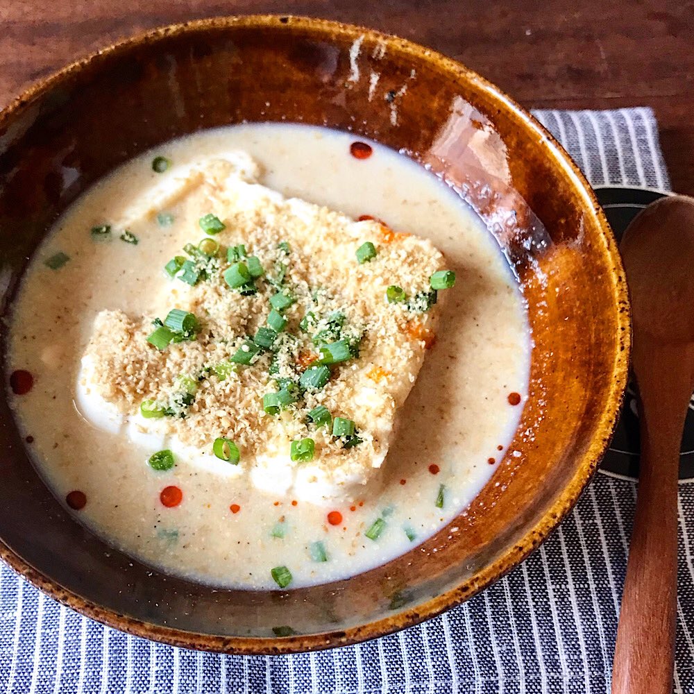 寒い朝はとろ~りホカホカ♪お豆腐まるごと「食べる豆乳スープ」 - 朝時間.jp。