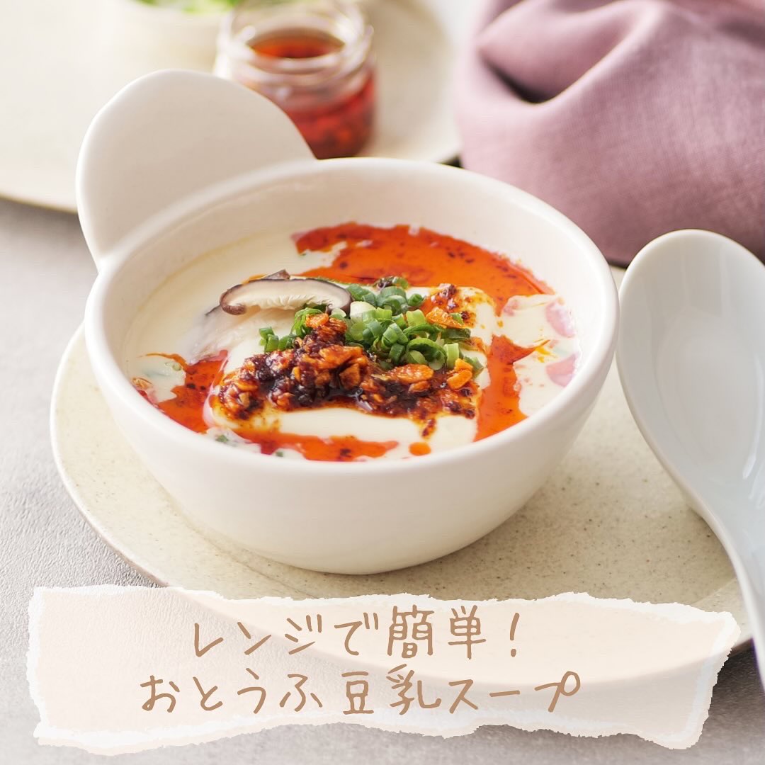 レンジで簡単!豆腐のピリ辛豆乳スープ – レシピ。
