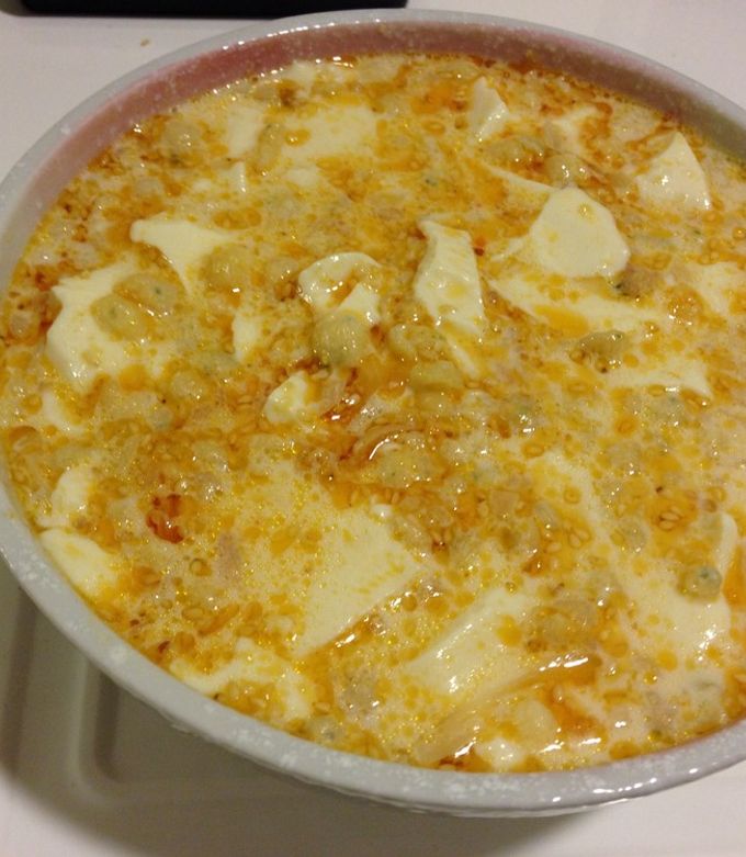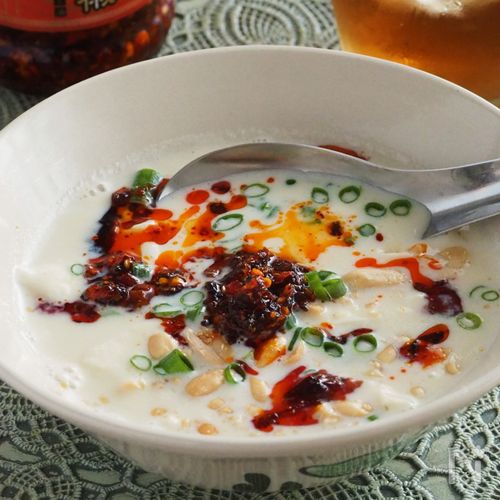 豆腐豆乳スープ おかずラー油。