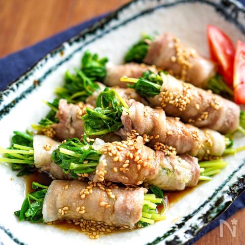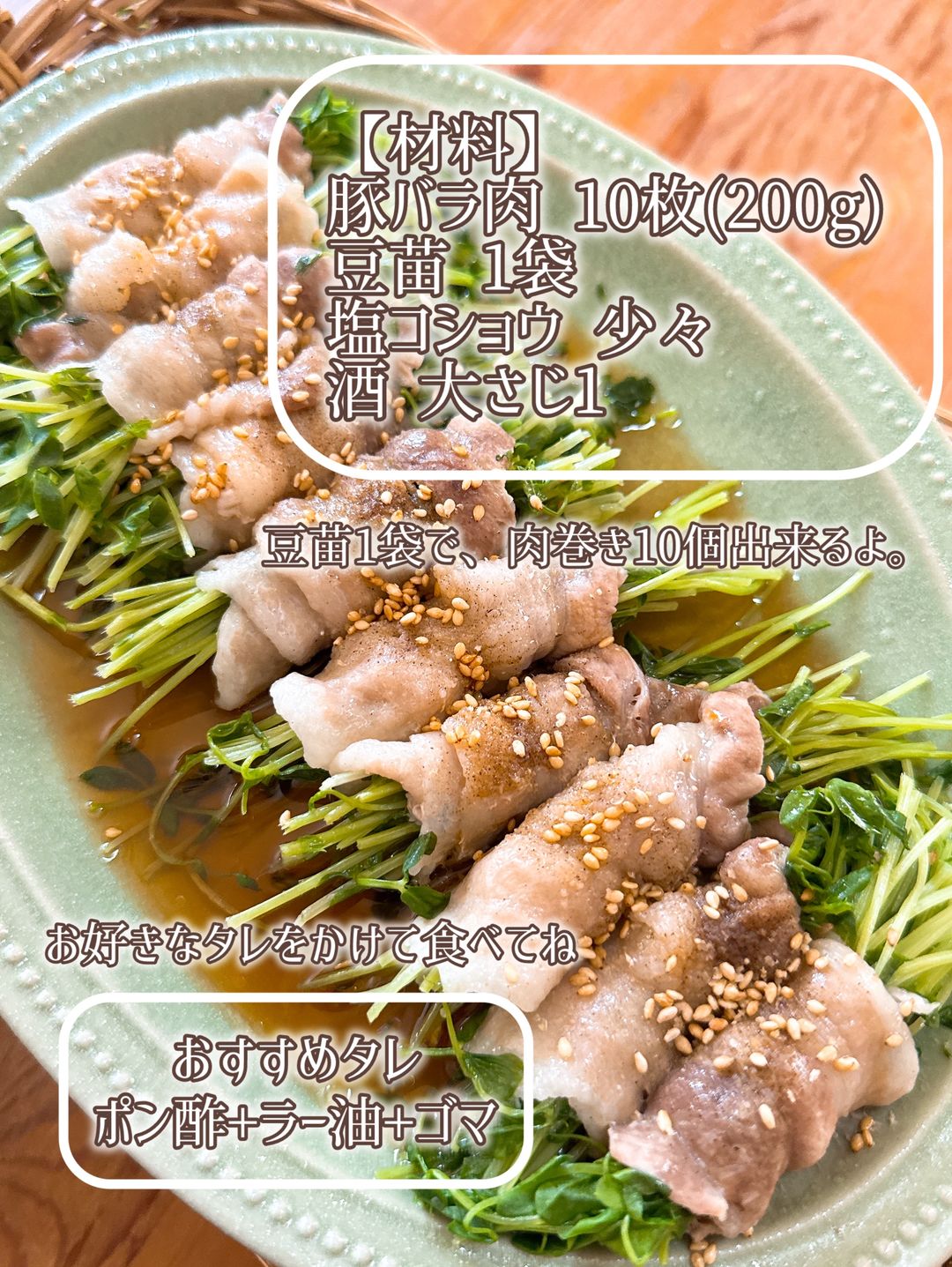 レンチン5分!豆苗の豚肉巻き😋。