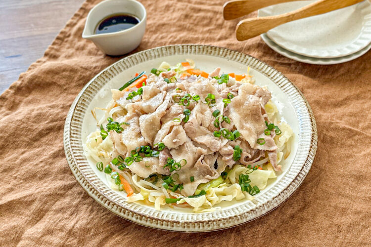 豚肉とカット野菜のかんたんレンジ蒸し。