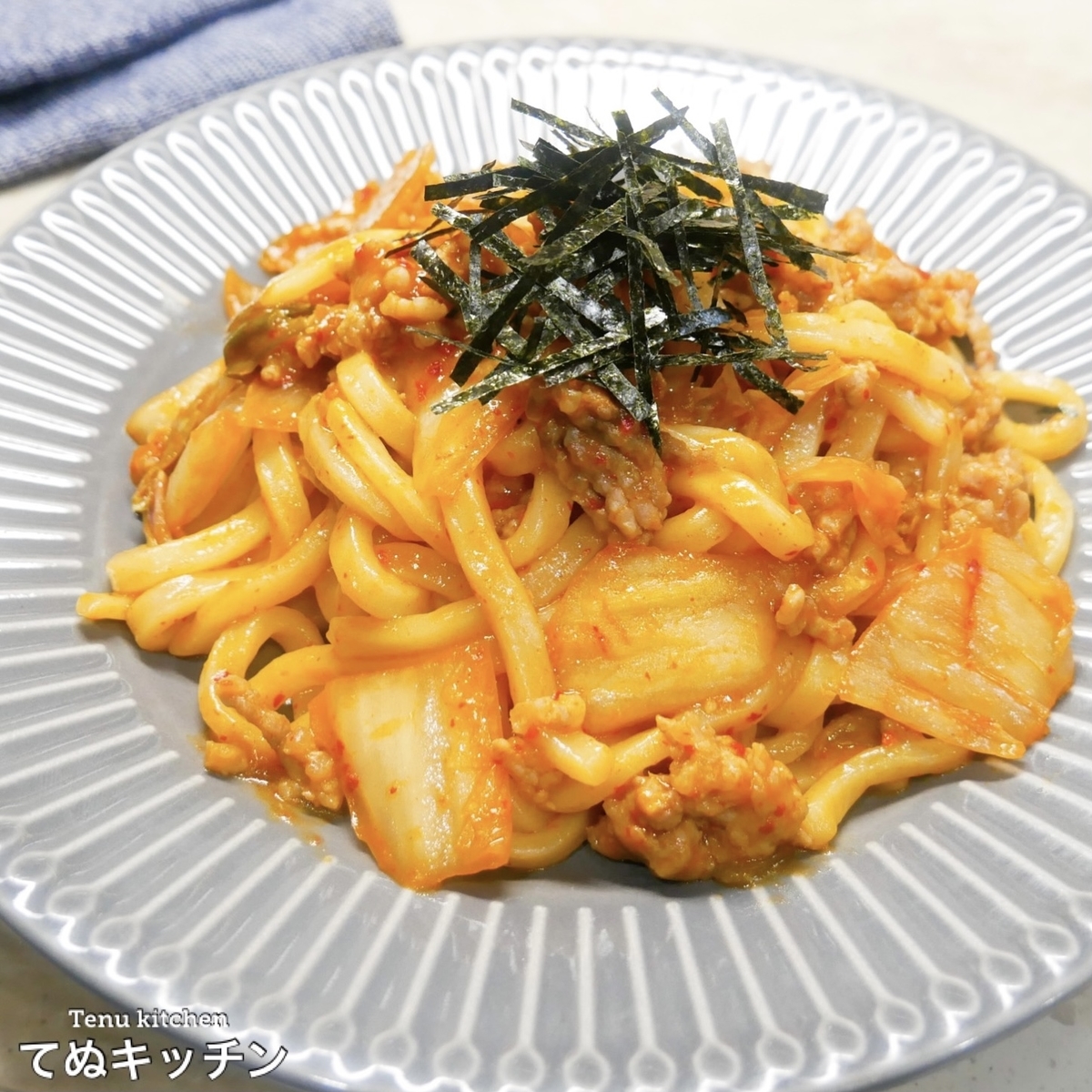調味料2つだけとは思えない美味しさ!!全部入れてレンジでチンだけ!『豚キムバターうどん』の作り方 - てぬキッチン。