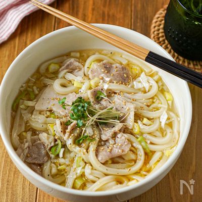 レンチンでめちゃくちゃハマっちゃううどんレシピできました!レンジで一発!ねぎ塩鶏うどん材料うどん1玉 キャベツ1~2枚 鶏もも肉100g水300ml 醤油小さじ半分 鶏ガラスープの素大さじ1 にんにくチューブ2cm 生姜チューブ2cm ごま油小さじ半分 黒胡椒適量。