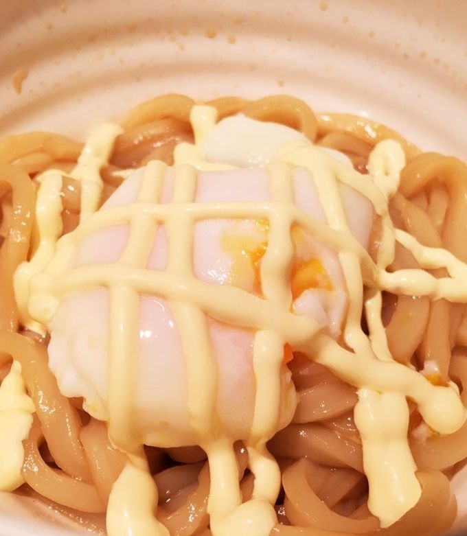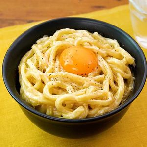 カルボナーラ風釜玉うどん。