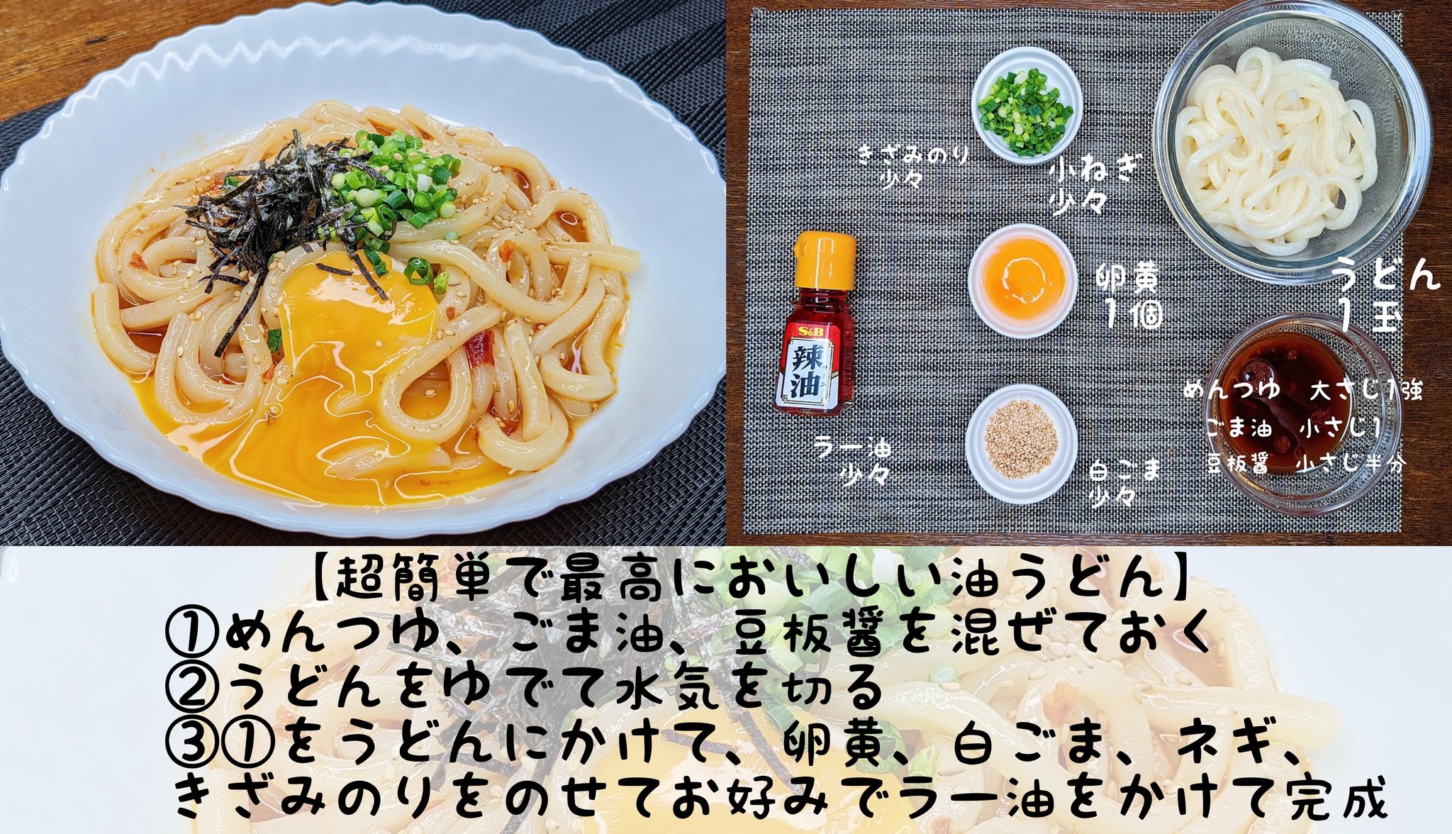 もうこれ、今までで一番簡単かもしれない オススメです!!つゆ油うどん。