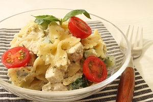 バジルチキンのパスタのレシピ・作り方とっておきレシピキユーピ。