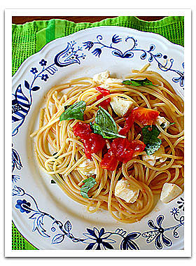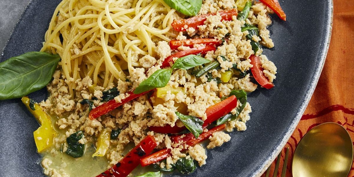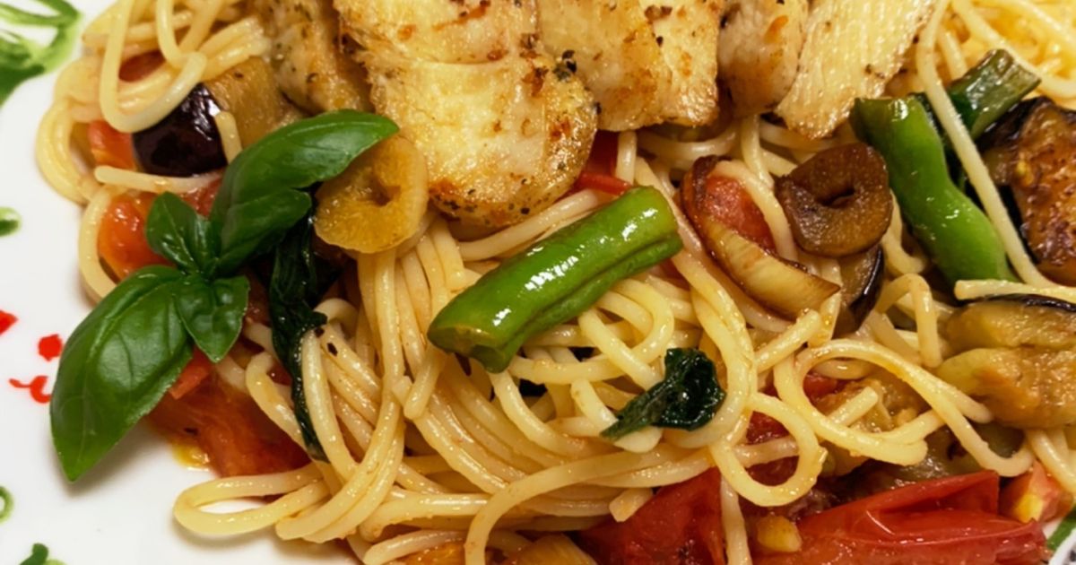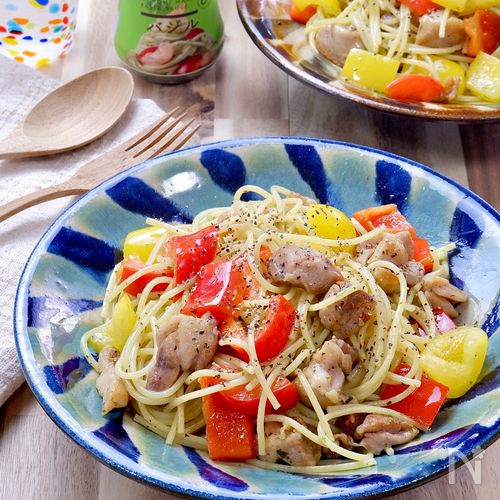 パプリカのバジルチキンラグースパゲティELLE gourmetエル・グルメ。
