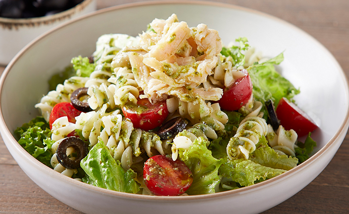 チキンとフジッリのジェノベーゼサラダCarboffレシピ低糖質パスタ「Carboffスペシャルサイト」はごろもフーズ。