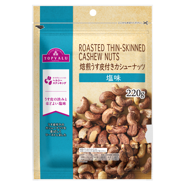 焙煎うす皮付きカシューナッツ 塩味-イオンのプライベートブランド TOPVALU トップバリュ- イオンのプライベートブランドTOPVALU トップバリュ。