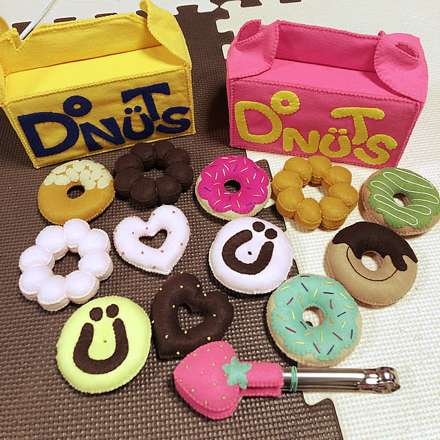 木箱付き☆カラフルドーナツ屋さん おままごとドーナツ セット お店屋さんごっこ おもちゃ 知育玩具 - SWEET AI GALLERYminne byGMOペパボ 国内最大級のハンドメイド・手作り通販サイト。
