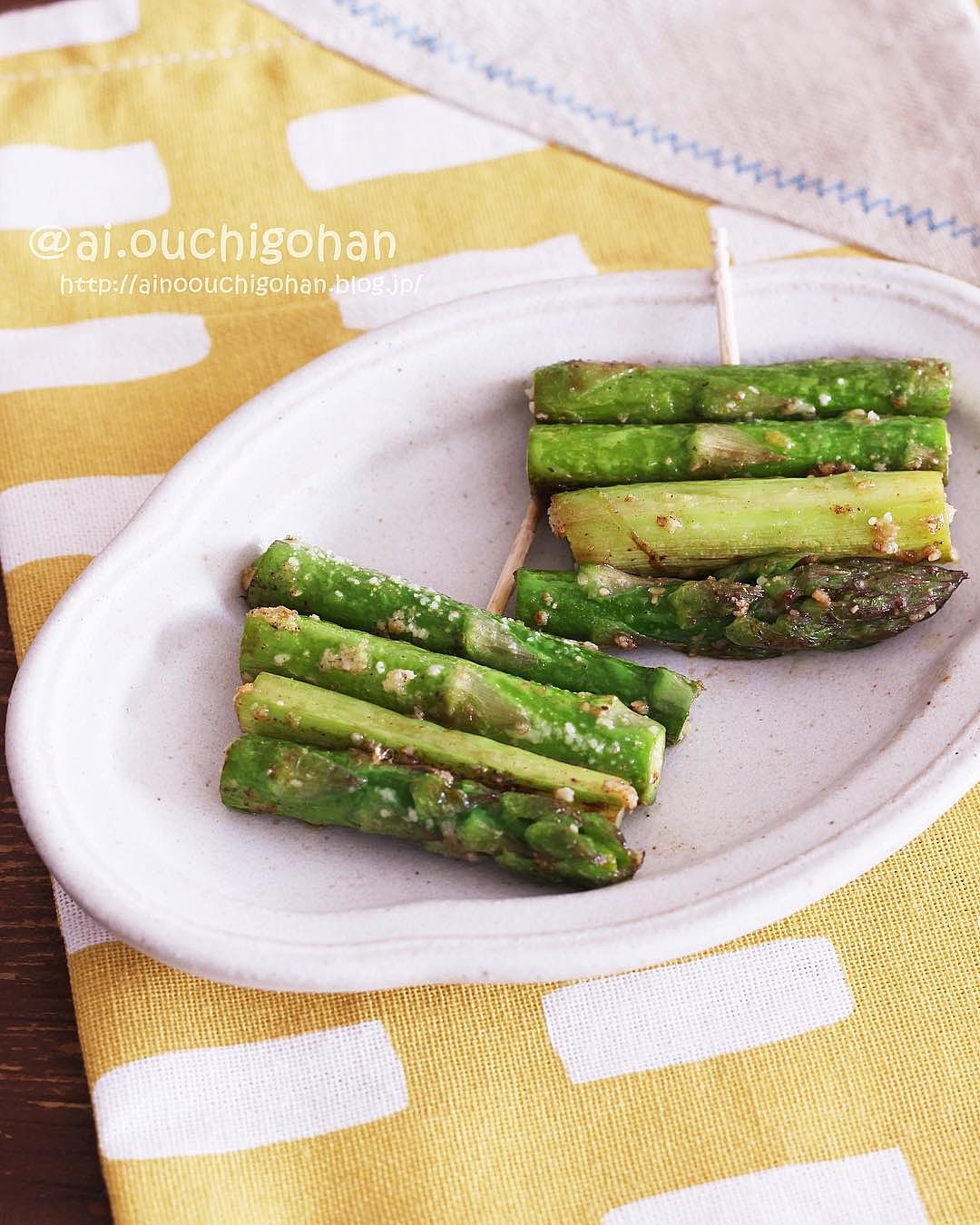 お弁当にもおすすめ*粉チーズでアスパラ串クラシル。