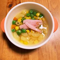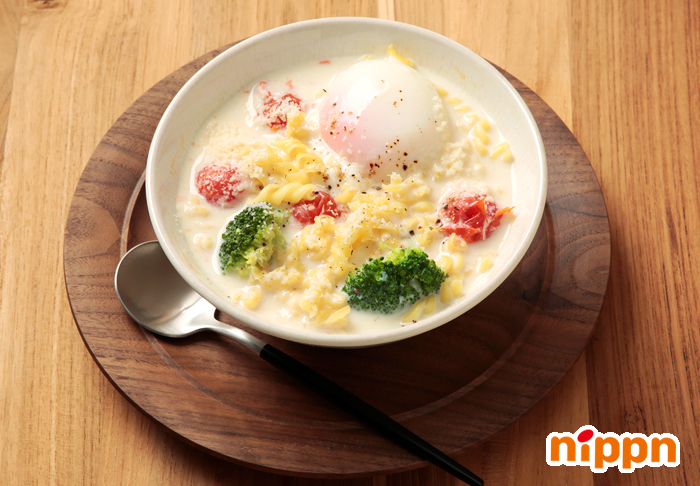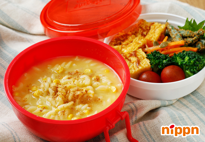 パスタ入りコーンクリームスープランチのレシピ 3分 168kcal 株式会社ニップン。