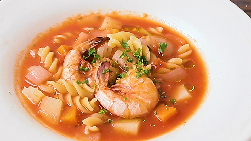 アレンジレシピ IQFバラ凍結パスタ編 トムヤムスープパスタ日清製粉ウェルナ業務用。